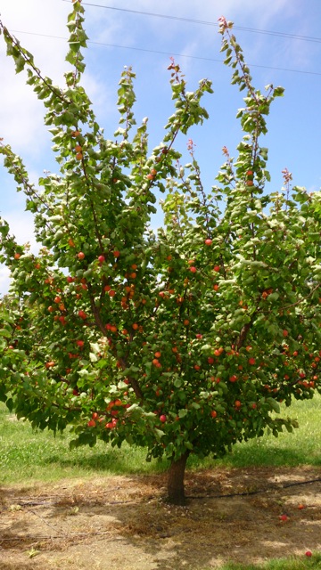 Un arbre de Big Red après le premier passage. Une qualité de fruit incomparable. Big Red confirme son potentiel de production années après années. Les statistiques confirment sa régularité et sa facilité de production il est simple de réaliser une moyenne de 70 kg par arbres avec un calibre dominant 2A/3A (45/55).