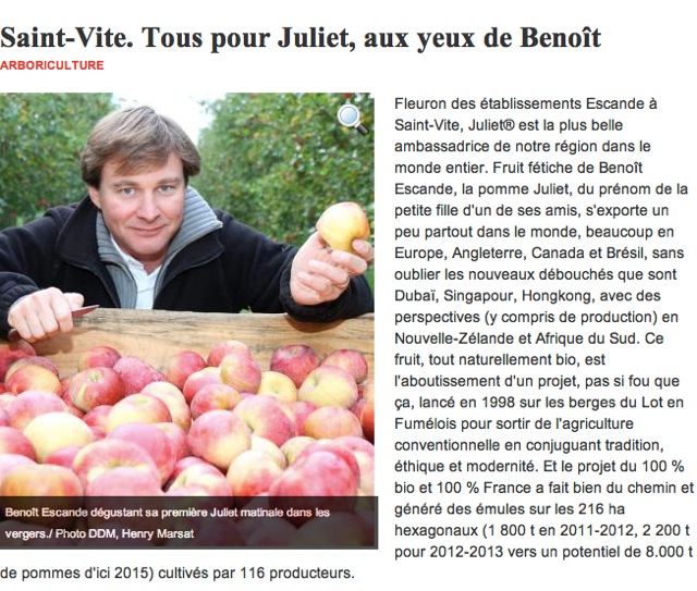 Les pépinières ESCANDE et sa pomme bio JULIET font la « une » de la presse régionale !