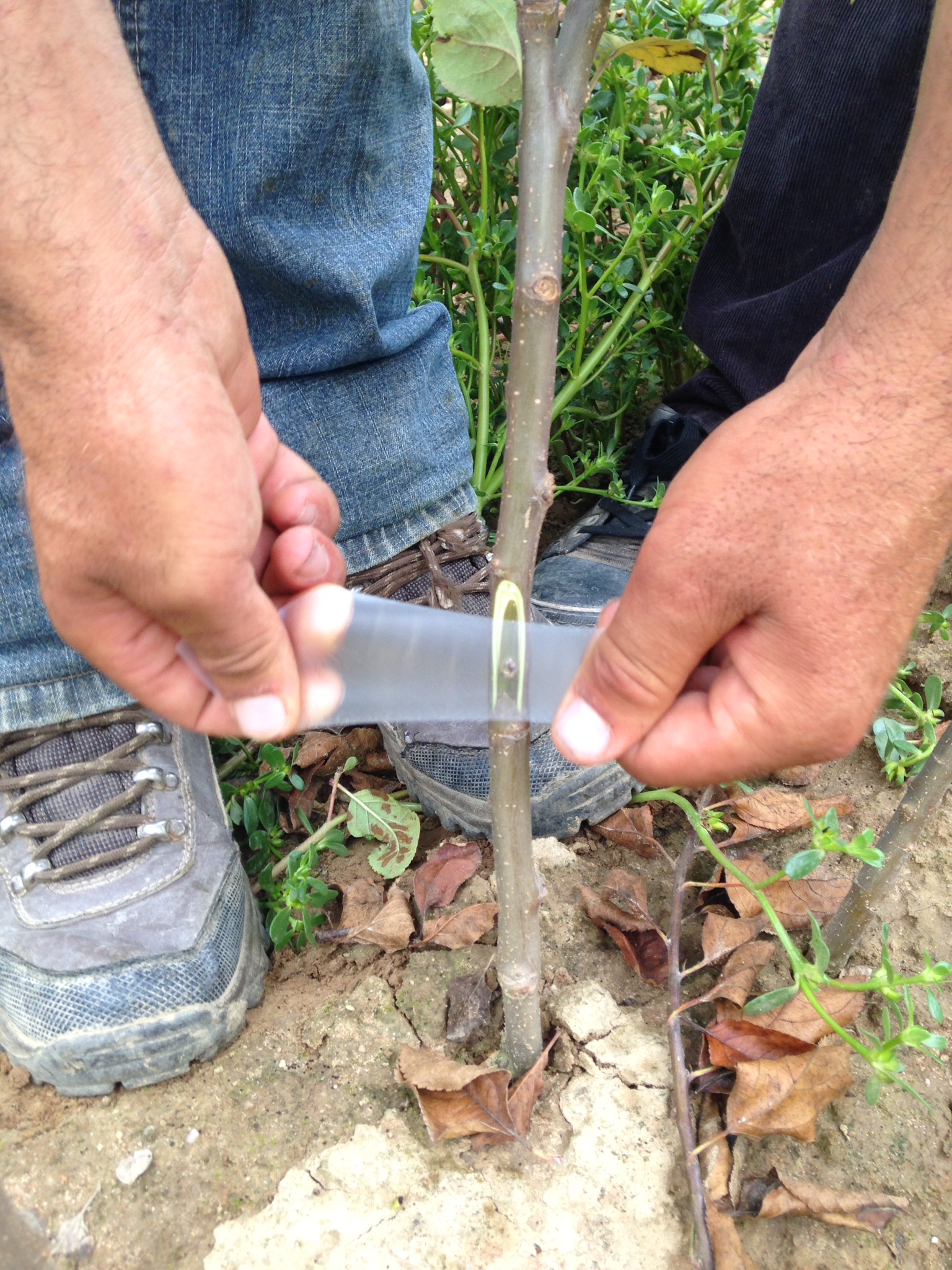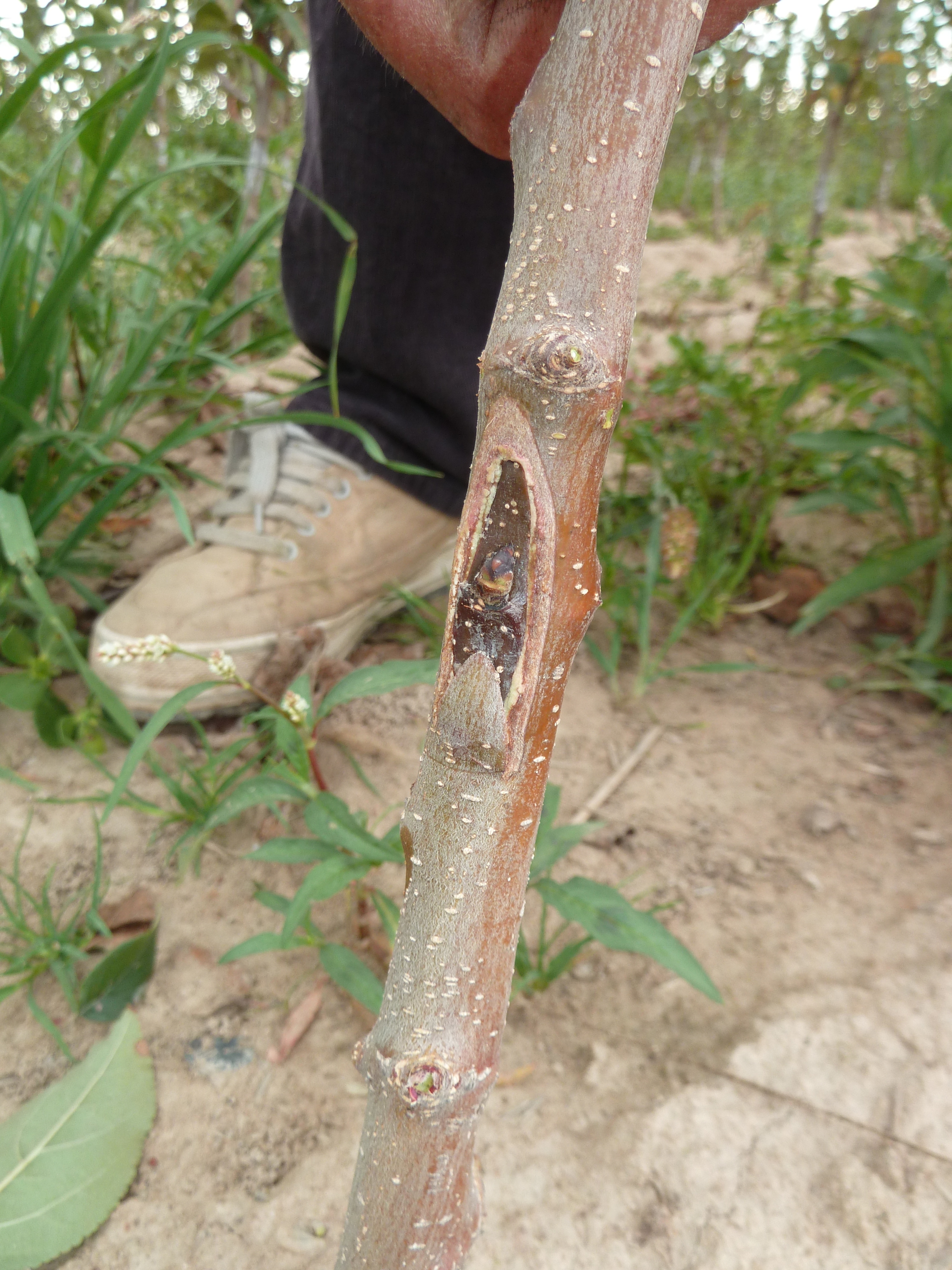 En été, on cherche à avoir un petit décalage entre le greffon et l’encoche afin de garantir une meilleure soudure et d’éviter le rejet du greffon.