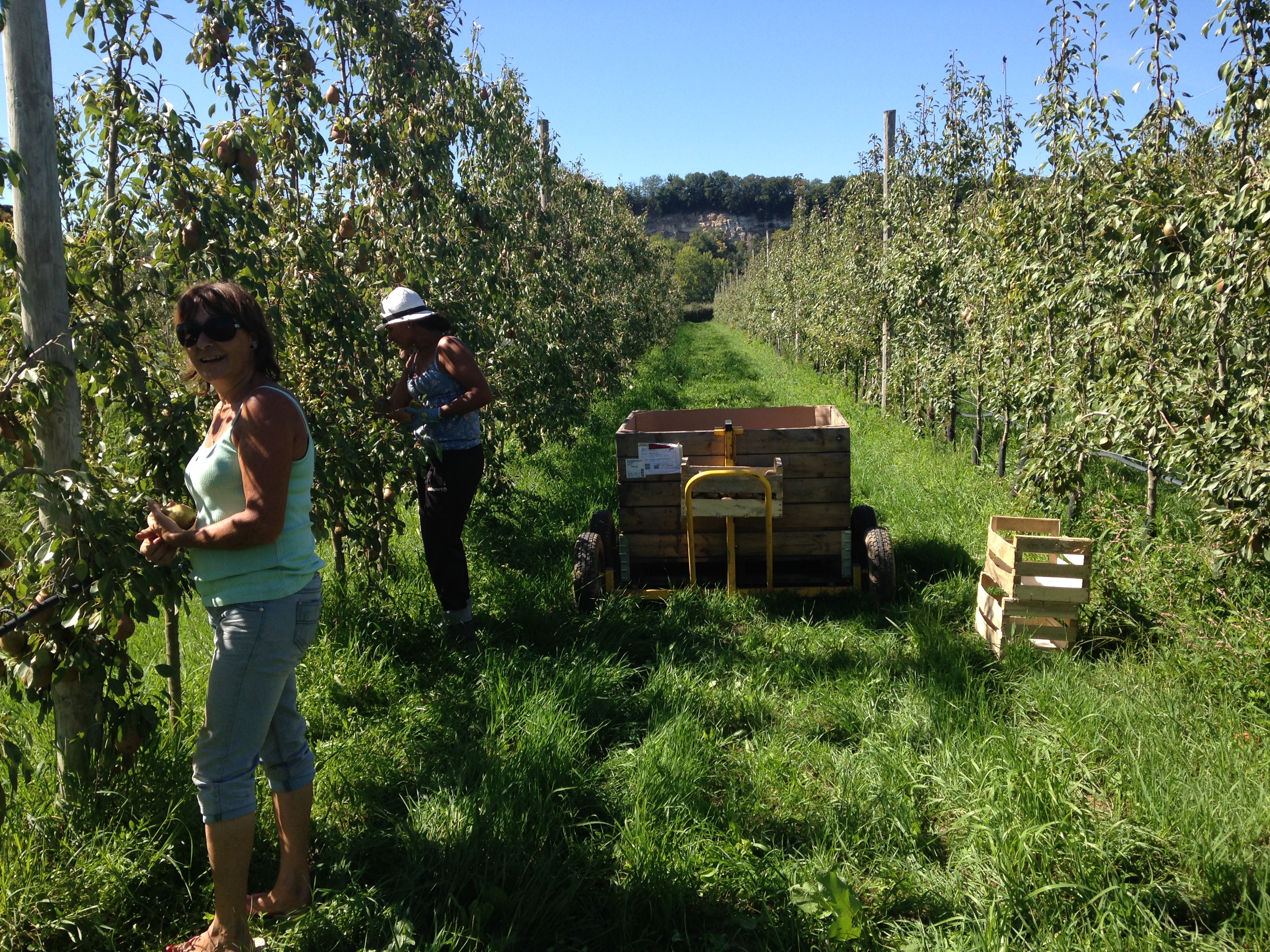 Dans nos vergers à Saint-Vite, en France, la récolte a commencé depuis aujourd’hui pour la version BIO, la poire SELENA®!